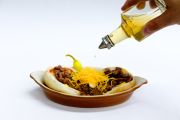 Served: Medium Includes:cheese, sour cream, onions, oyster crackers and chili peppers.